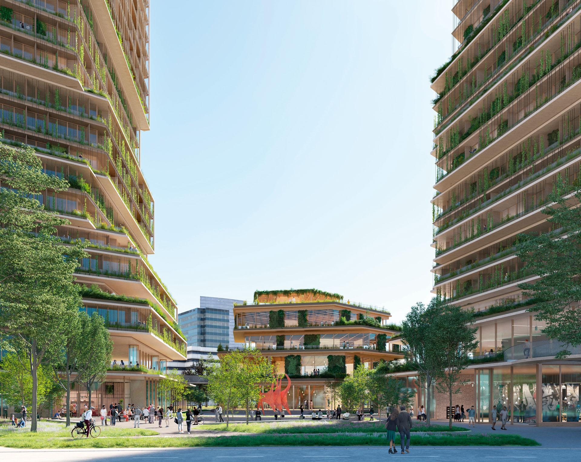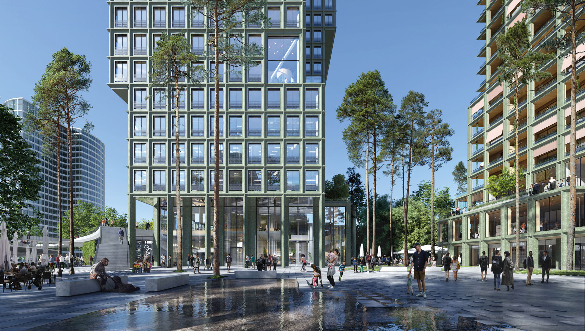 Der Büroturm bietet durch flexible Grundrisse eine hohe Nutzungsqualität und gute Vermarktbarkeit, während die polygonale Grundform der Türme einen einzigartigen Ausblick auf jeder Etage ermöglicht. Auch für die Wohngrundrisse sieht das Preisgericht Potenzial für attraktive Wohnungen. Gelobt wird außerdem, dass die Gebäude keine Rückseiten ausbilden und so zur Offenheit des Quartiers beitragen.