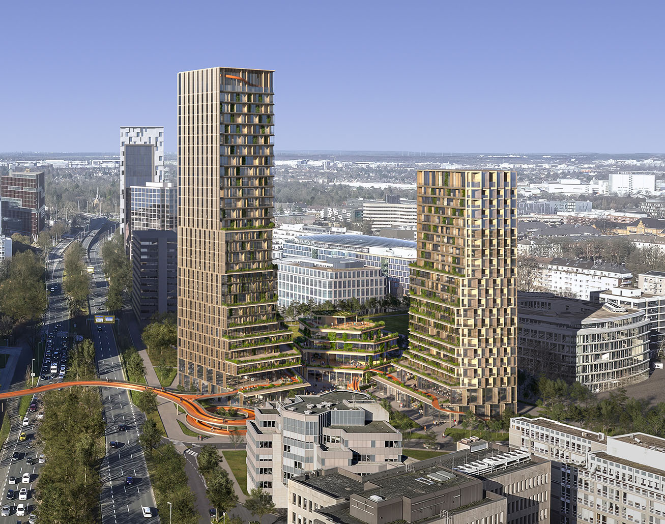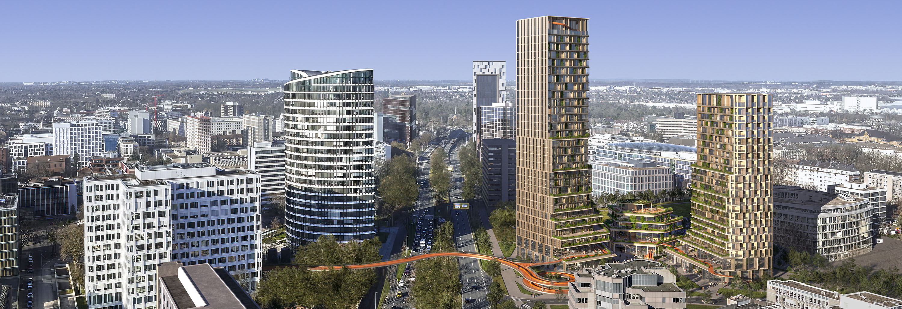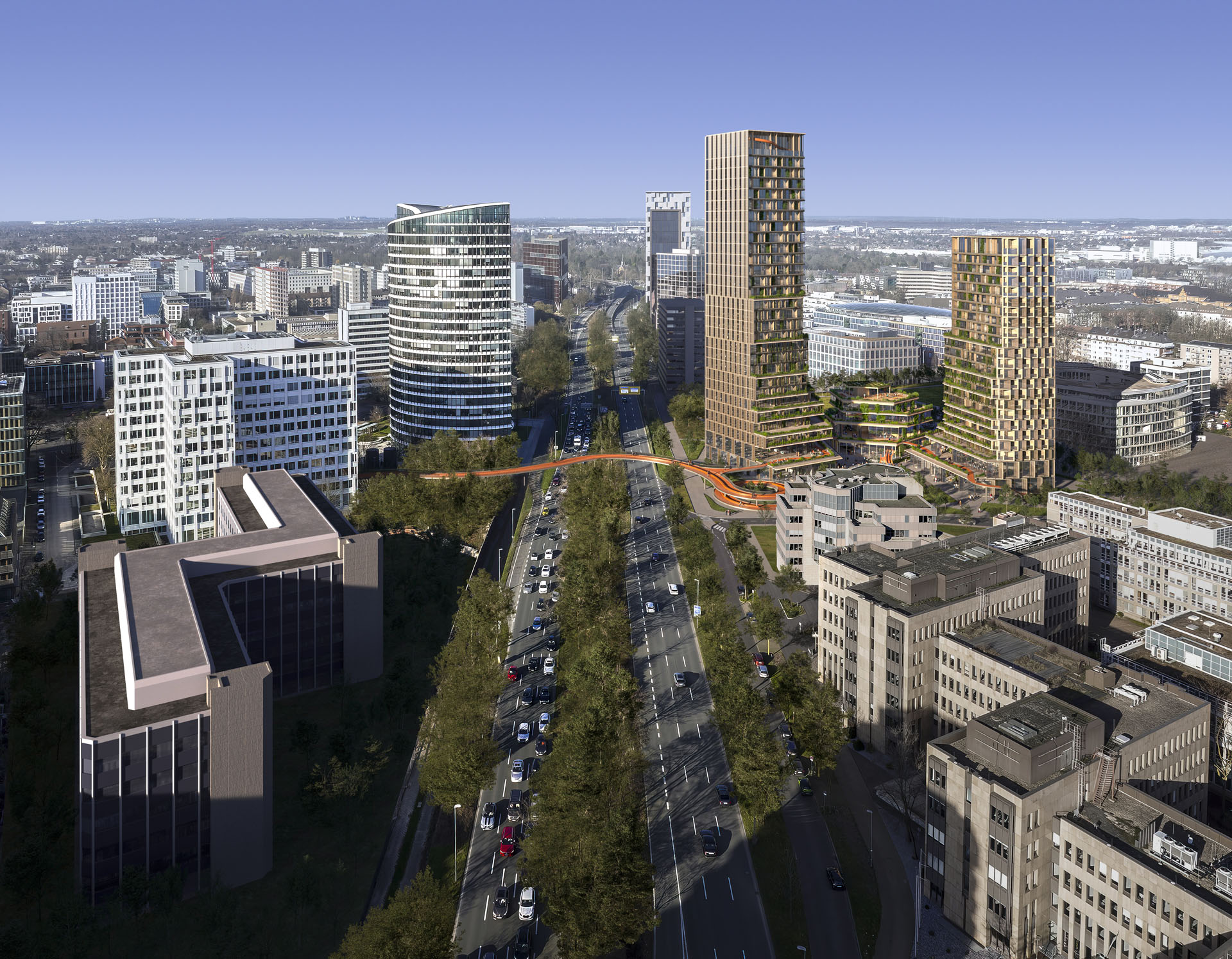 With the NEW HEART on the block project, the developers are working with the state capital of Düsseldorf to develop an identity-defining high-rise ensemble in a central location on Kennedydamm. The new neighborhood center is intended to form the “heart of Derendorf and Golzheim” as an “urban hub” with supraregional appeal. In addition to high-quality office space, residential offerings and a variety of uses are also to be created, sensibly connecting the neighborhood, the public, and mobility. The basis for this is Düsseldorf's high-rise framework plan, which defines the area as a potential location for new high points.